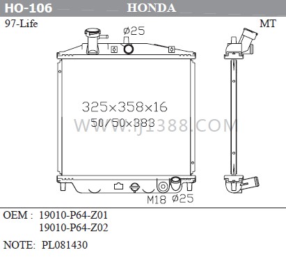 19010-P64-Z01 19010-P64-Z02 aluminium Car Radiators For Honda Life 97- Mt Images |