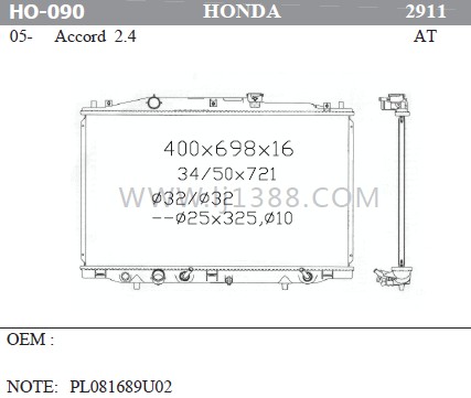 | HO-028 | 19010-RAA-A51 19010-RAA-A01 | 81617 | 2569 | 03-04 Accord 4cyl |