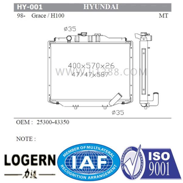 Car Engine System 98 Hyundai H100 Radiator , Custom Aluminum Radiator Open Type Images |